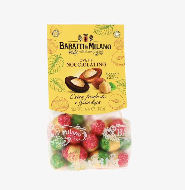 Savourez l’intensité du chocolat noir associée à la douceur fondante du gianduja dans ce sachet de petits œufs aux éclats de noisettes. Chaque bouchée révèle un cœur délicatement praliné, sublimé par des notes riches et gourmandes.