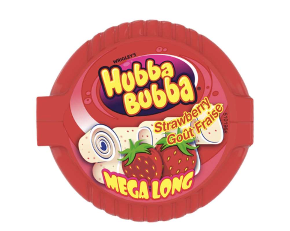 Hubba Bubba, c'est un rouleau de 180cm de Bubble Gum au bon goût Fraise - Retrouvez le goût de votre enfance avec les bubble gum Hubba Bubba !