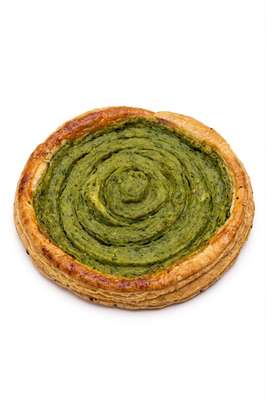 Asperges vertes 41,5%, feuilletage inversé 24% (farine de BLE 46,1%, BEURRE 36,9%, eau, vinaigre d'alcool, sel), pois chiche vert 20,7%, huiles végétales (huile d'olive vierge extra, huile de tournesol), persil, biscuits salés (farine de BLE, BEURRE, OEUF, PARMESAN (LAIT, sel, présure)), poudre d'AMANDE, CREME, stabilisant : carraghénanes, EMMENTAL (LAIT, sel, ferments LACTIQUES), sel fin, sorbitol, poudres a lever : E450, E500, farine de BLE), olive 1,2% (olive, huile d'olive vierge extra, romarin, thym, laurier, sel, acidifiant : acide citrique), thym, fleurs comestibles.