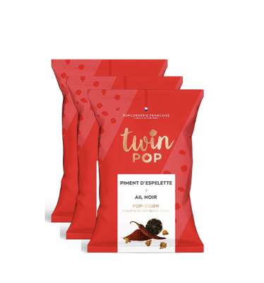 Lot de 3 x Popcorn piment d'Espelette et ail noir, Twin Pop (28 g)