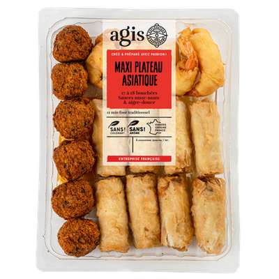 Acras de morue: Chair de MORUE 25%, purée de pomme de terre (eau, flocon de pomme de terre déshydraté), huile de tournesol, oignon, LAIT demi écrémé, protéine et amidon de BLE, CREME, ŒUF entier en poudre, huile d'olive vierge, ail, oignon déshydraté, persil, farine de BLE, blanc d'OEUF en poudre, poudre à lever (E450i, E500ii, amidon de BLE), piment, poivre.
