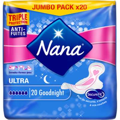 Avec leur technologie unique Securefit™, les serviettes Nana Goodnight épousent parfaitement vos courbes et restent en place quels que soient vos mouvements. Grâce à ce fit parfait, elles vous offrent une sécurité maximale pendant vos règles vous permettant d’avoir le meilleur sommeil possible. Elles sont aussi confortables que nos autres serviettes, encore plus longues et plus absorbantes, et grâce à leurs ailettes restent bien en place.