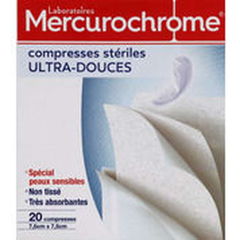Compresses stériles ultra douces, Mercurochrome (x 20)