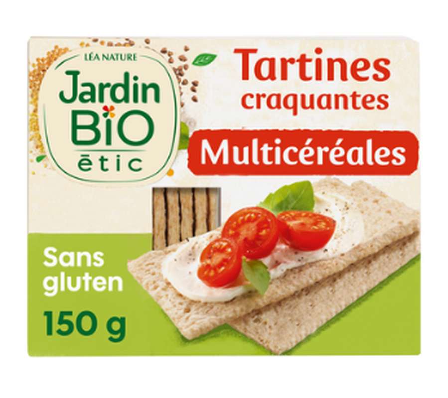 Découvrez l’alliance de 4 céréales dans les Tartines Jardin Bio étic®® garanties sans gluten et sans lactose. Dégustez les remplacement du pain pour combler tous vos petits creux, ou au petit déjeuner.