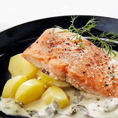 Un incontournable de la cuisine française, le saumon à l'oseille, accompagné de ses pommes de terre fondantes.