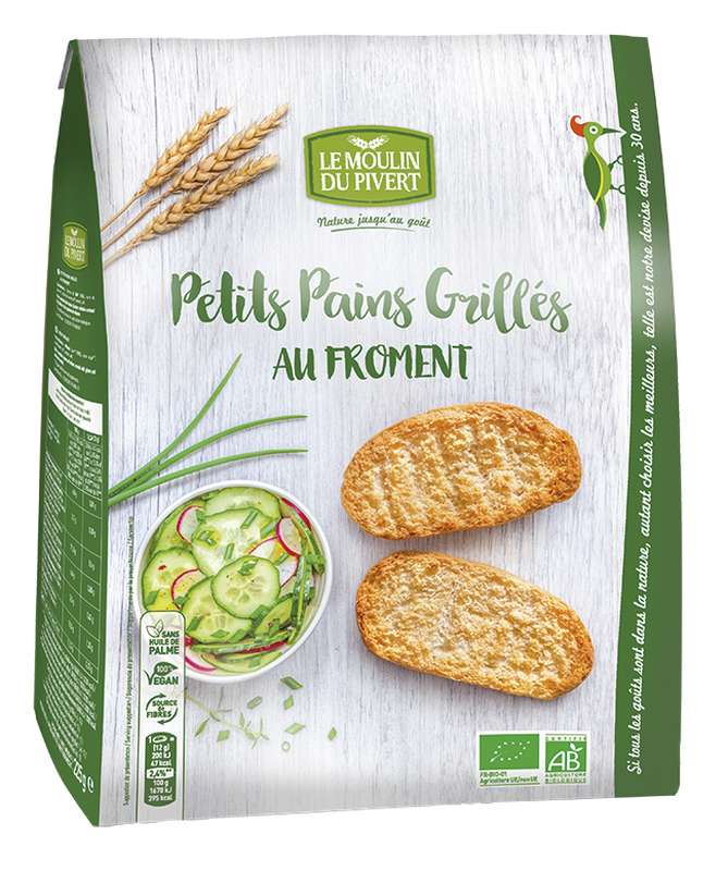 Ces pains grillés développent grâce à une recette exclusive toutes les qualités gustatives associées à l’utilisation de farines de qualité, blanche et complète. Ils sont sans huile de palme et riches en fibres.