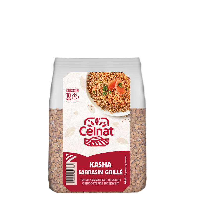 D’origine slave, le kasha est un sarrasin décortiqué et grillé. Le kasha se consomme chaud en céréale d’accompagnement ou vous servira pour farcir des légumes (choux, courgette, potimarron…) et également en quiches ou en galettes.