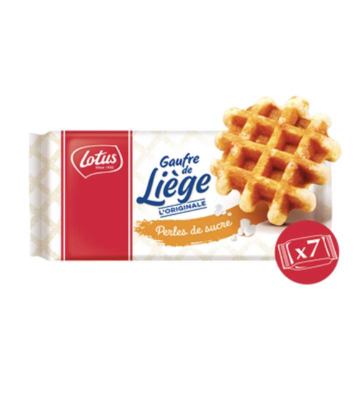 Farine de BLE tendre, perles de sucre (21%), huiles végétales (huile de palme issue de plantations durables et certifiées, huile de colza), sirop de glucose-fructose, OEUFS frais (5%), levure, émulsifiant (mono- et diglycérides d'acides gras, stéaroyl-2-lactylate de sodium, lécithine de SOJA), sel, arôme