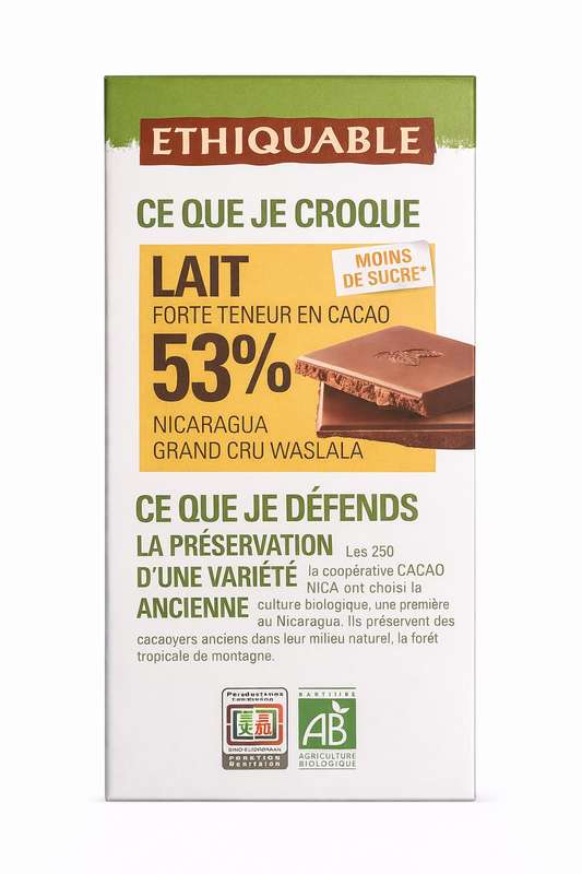 CHOCOLAT LAIT 53% CACAO EQUATEUR BIO ETHIQUABLE 100G