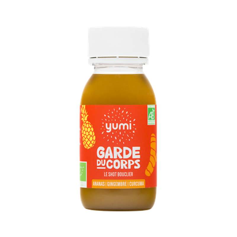 Pomme (56,5%), Ananas (25,1%), Citron (8%), Curcuma (5%), Gingembre (5%), Piment de Cayenne (0,4%), Vitamine C