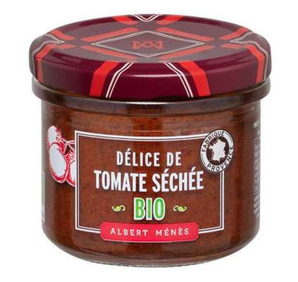 La crème de tomate séchée BIO Albert Ménès est élaborée au cœur de la Provence à partir de tomates issues de l’agriculture biologique et sélectionnées pour leur chair douce et parfumée. Après récolte, les tomates sont délicatement séchées puis confites, et concentrent ainsi tous leurs arômes. Réduites en pâte et agrémentées de basilic, de nombreux aromates et d’huile d’olive vierge extra, elles mijotent le temps nécessaire à l'obtention de l'onctuosité parfaite. La cuisson lente et douce de cette recette permet de préserver le goût délicat et inimitable de la tomate séchée. De quoi apporter des saveurs ensoleillées à vos apéritifs gourmets ! Une recette 100% naturelle, sans conservateurs, sans colorants, ni arômes artificiels.