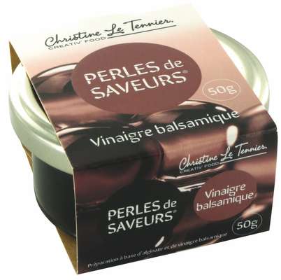 Nous vous proposons de tester, et d’approuver, les fameuses Perles de Saveurs Christine Le Tennier, au vinaigre balsamique ! Les Perles de Saveurs sont de petits bijoux culinaires à la craquante pellicule d’alginate, dérivé d’algue Kombu, et au cœur liquide. Elles sublimeront vos salades estivales, tomates mozzarella et autres crudités et vous procureront une explosion surprenante de saveurs en bouche !