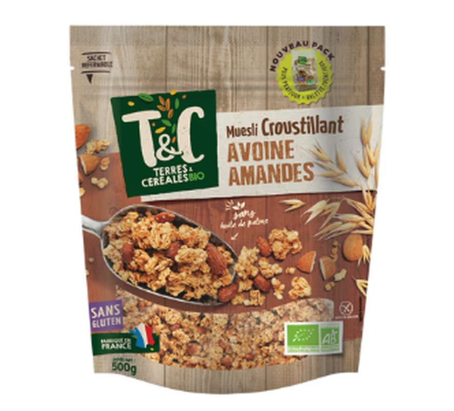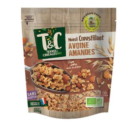 Muesli croustillant avoine amandes sans gluten BIO, Terres et céréales (500 g)