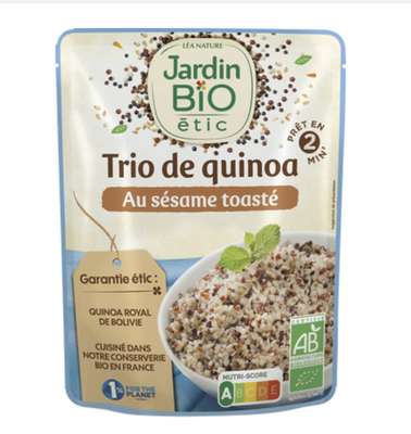 Des plats savoureux prêts en 2 minutes - Sans Gluten et Sans lactose Parfaits pour un repas sain et délicieux, les sachets express Jardin BiO sont prêts en seulement 2 minutes. Très pratiques grâce à leur format nomade et individuel. Ils s'emmènent