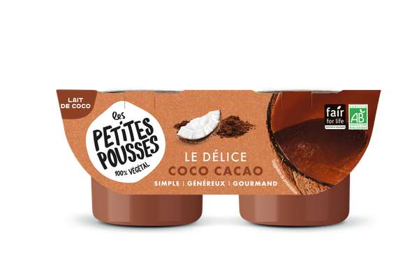 Ce dessert végétal Bio au lait de coco et cacao Les Petites Pousses vous rappellera les petits pots de crème : une texture à la fois ferme et fondante. Sans aucun compromis sur le goût, avec la juste dose de sucre, ce dessert unique est aussi source de calcium, sans lactose et sans soja. Probablement le meilleur dessert végétal qui allie naturalité, bien-être et plaisir !