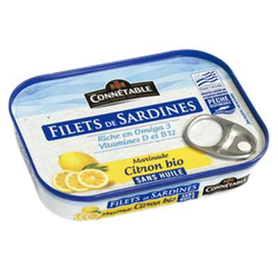 Filets de sardines marinade citron sans huile BIO, Connetable (90 g)