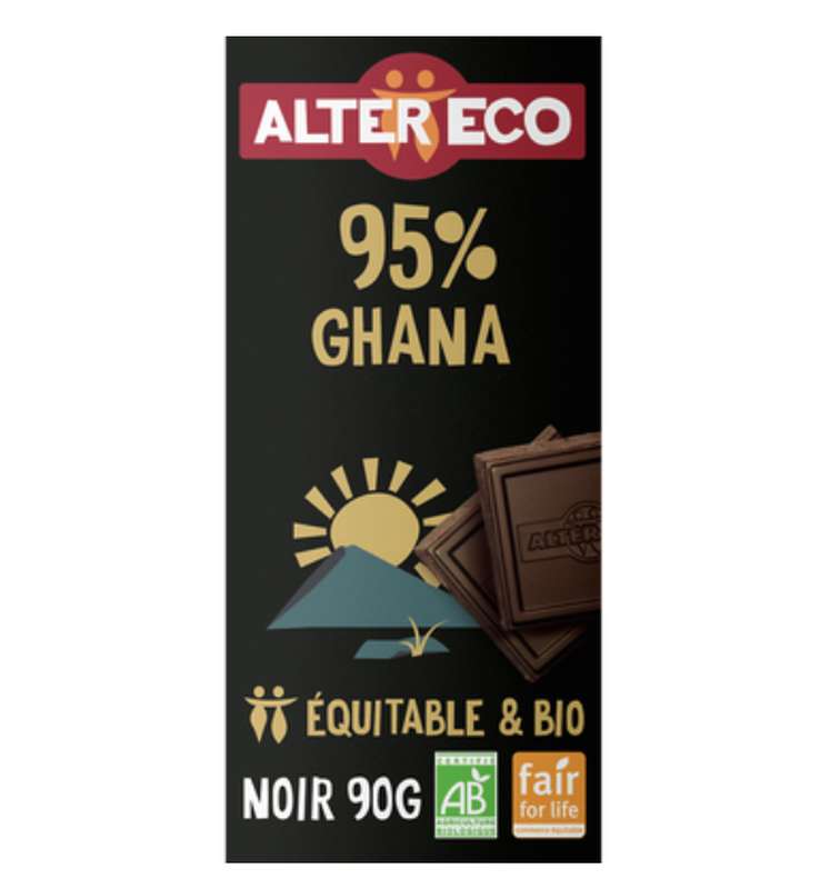 Chocolat noir 95% cacao Togo BIO, Alter Eco (90 g)