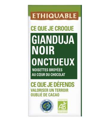 Sucre de canne°*, pâte de cacao*° du Nicaragua (32%), pâte de NOISETTES° (20%), beurre de cacao°*, émulsifiant: lécithine de SOJA°, extrait de vanille°*