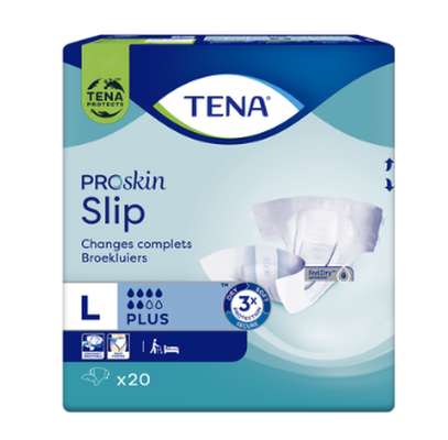 TENA Slip ProSkin Plus est un produit d’incontinence de type change complet ouvert avec attaches repositionnables offrant un ajustement parfait, un confort et une protection contre les fuites. TENA Slip ProSkin Plus présente une matière sensation textile douce, un ajustement près du corps et un noyau super absorbant pour une sécurité antifuites élevée. Il est idéal pour les personnes semi-mobiles ou immobiles. Grâce à la technologie FeelDry Advanced™, le produit absorbe rapidement le liquide, aidant à maintenir la peau sèche et saine. Le noyau hautement absorbant absorbe alors rapidement l’urine, même en grande quantité, pour assurer une garde au sec. Le voile extérieur ConfioAir™ 100 % respirant laisse la peau respirer. Toutes ces caractéristiques aident à préserver la santé naturelle de la peau. La conception ouverte avec attaches adhésives résistantes permet de changer facilement le produit en position debout ou couchée et de le repositionner plusieurs fois pour un ajustement optimal. Pour encore plus de fraîcheur, le produit neutralise les odeurs, et possède un indicateur d’humidité qui indique quand il est temps de le changer. TENA Slip ProSkin Plus est proposé dans une variété de tailles et niveaux d’absorption.