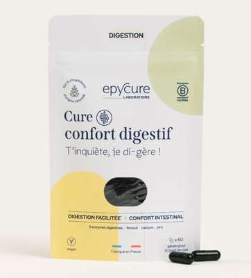 60 gélules à base d’enzymes digestives, fenouil, vitamines & minéraux pour une meilleure digestion et un bon transit.
