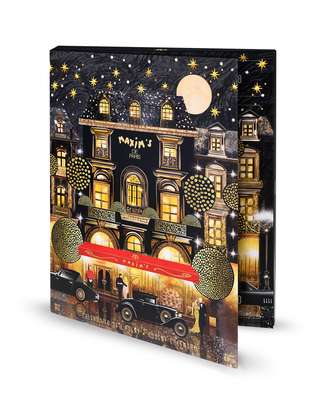 Découvrez à l’intérieur de ce calendrier de l’avent recréant l’ambiance festive de Noël du célèbre restaurant parisien et s’ouvrant comme un livre, une collection de délicieuses gourmandises au chocolat. Derrière une galerie de portraits croqués par le dessinateur SEM, célèbre portraitiste du Maxim’s de la Belle Epoque, 24 trésors de chocolat vous feront patienter avec gourmandise jusqu'à Noël. Truffes, carrés de chocolat, mini rochers, crêpes dentelle, mini-cœurs, noisettes enrobées de chocolat… plus d’une dizaine de recettes sont à découvrir !