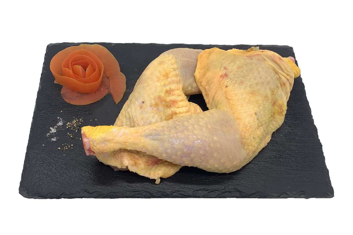 "Paquet de deux cuisses de poulets fermiers de l'Aveyron, à dorer au four ou à la poêle.