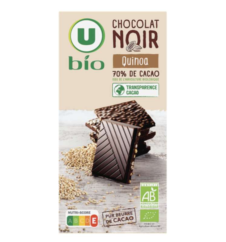 Chocolat noir 70% de cacao quinoa BIO, U BIO (100 g)