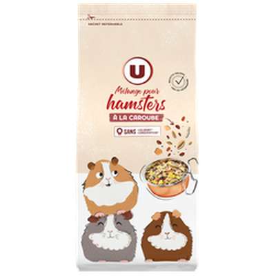 Céréales 41%, légumes, graines, noix, sous-produits d'origine végétale, fruits (caroube 6%), extraits de protéines végétales, substances minérales, sucres, huiles et graisses.