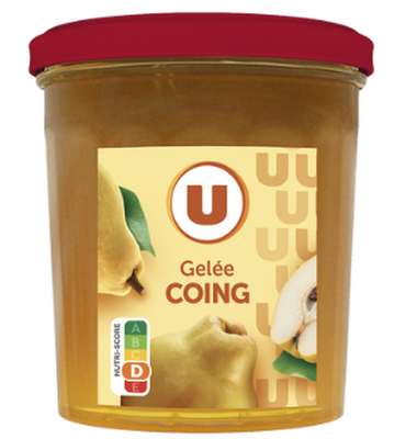 Sucre, jus de coings, jus de coings à base de concentré, sucre de canne 13.9%, gélifiant : pectine, acidifiant: acide citrique. Préparée avec 47 g de jus de coings pour 100 g de produit fini.