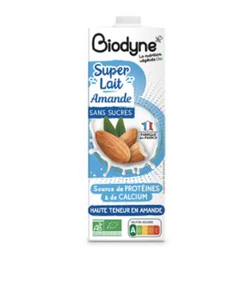 Ce super lait d'amande est un concentré à 6% d'amandes partiellement dégraissées riches en protéines, obtenu à partir de 10% d'amandes entières.