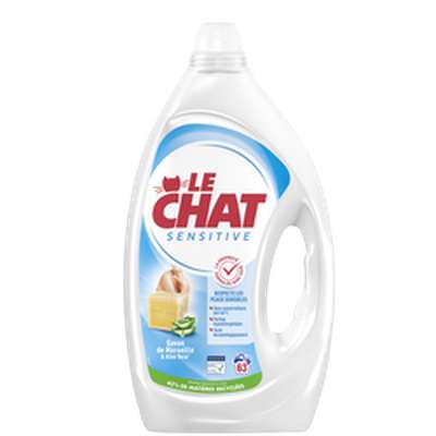 Le Chat s'engage à faire toujours mieux pour ce qui vous tient à cœur, en vous garantissant : - Toute l'efficacité Le Chat - Des ingrédients sélectionnés avec soin - Une formule sans conservateurs MIT ni BIT** et un parfum hypoallergénique (**sans BIT ajouté par le fabricant). Le Chat Sensitive au Savon de Marseille et Aloe Vera* vous garantit un linge propre tout en respectant les peaux sensibles, grâce à sa formule élaborée avec des dermatologues. (*Aloe Vera : parfum de synthèse)