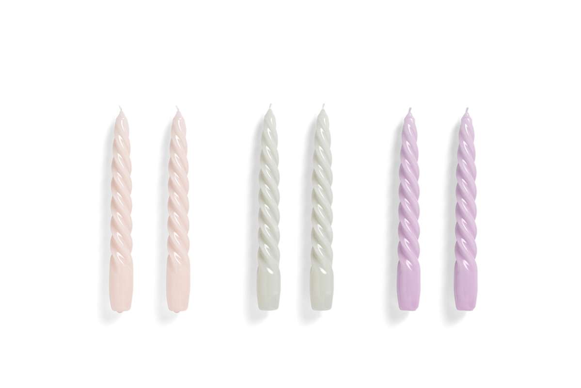 Set Bougies Candle Twist Light rose Light grey Lilac, Hay (x6)