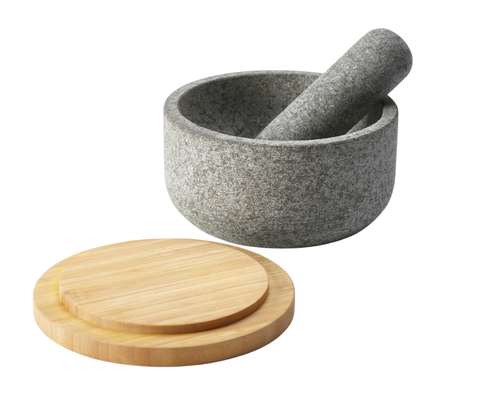 Couvercle en bambou qui garde le mortier propre et sans poussière lorsqu'il est rangé.