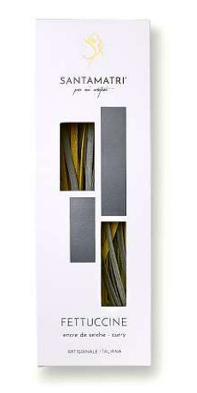 Nos Fettuccine sans œufs sont produites en petit lots, en suivant un procédé strictement artisanal. Le pétrissage délicat, le tréfilage au bronze, le séchage à une température de 38°, permettent de préserver entièrement les nutriments et les saveurs du blé italien, de l'encre de seiches sauvages d'Atlantique et du curry Garam masala.