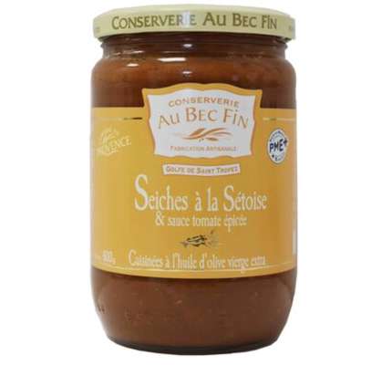 Plats cuisinés avec des morceaux de seiches accompagnés de sauce tomates épicés