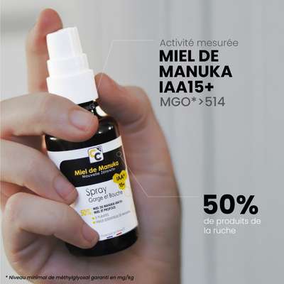 Le Spray Gorge et Bouche au Miel de Manuka est une solution apaisante, idéale pour soulager les irritations de la gorge et de la bouche. Sa formule enrichie en miel de Manuka et en ingrédients naturels contribue à hydrater et protéger les muqueuses tout en apportant une sensation de fraîcheur.