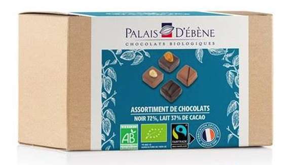 Ballotin de grand praliné chocolat noir 72% cacao et chocolat lait 37% BIO, Palais d'Ebène (180 g)