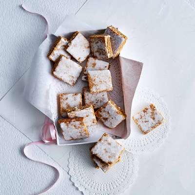 Sucre brun, farine de BLÉ, miel destiné à l'industrie, AMANDES, NOISETTES, zeste d´orange, LAIT, sirop de glucose-fructose, zeste de citron, masse de cacao, agent d'humidification: sorbitol; sirop de glucose, épices (<1%), blanc de l'OEUF, beurre de cacao, émulsifiant: lécithine de SOJA; acidifiant: acide citrique; extrait de vanille. Peut contenir des traces de ARACHIDES, AUTRES FRUITS À COQUES, LUPINS, MOUTARDE, SÉSAME, SULFITES.