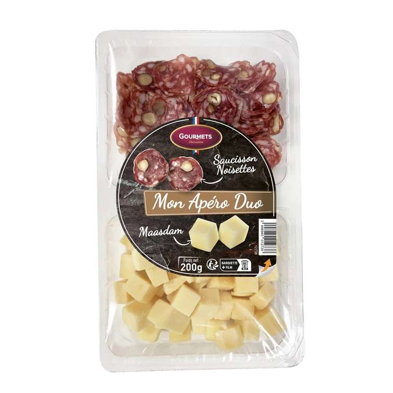 Apéro duo saveur fruité maasdam et saucisson noisettes, Gourmets (200 g)