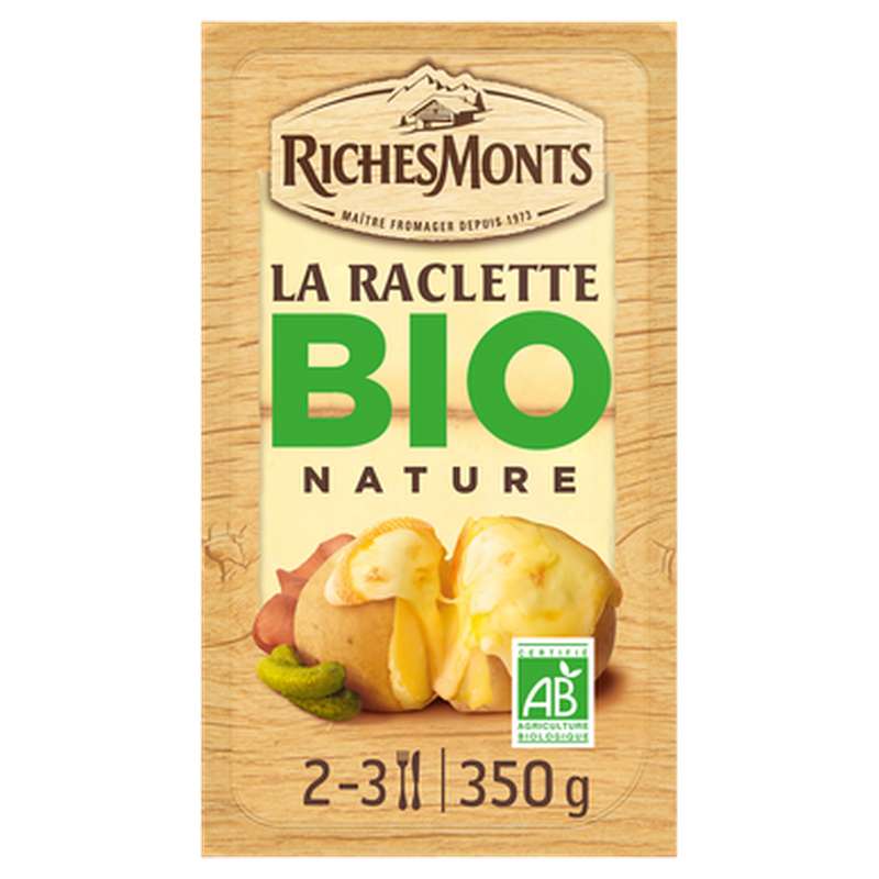Fromage à Raclette au lait bio tranché 26%MG, Riches Monts (350 g)
