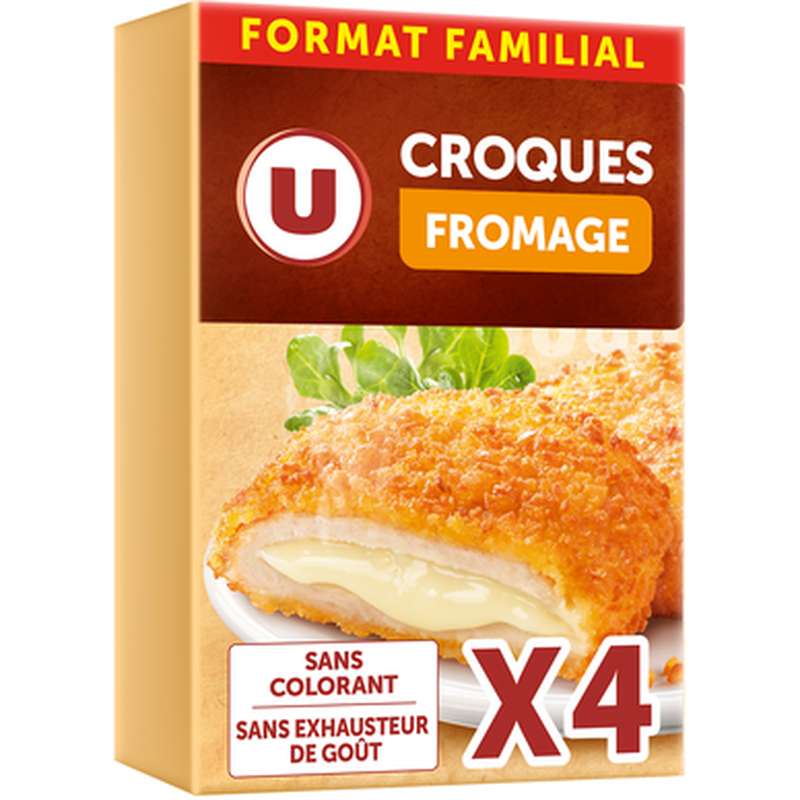 Viande de volaille traitée en salaison garnie au fromage fondu, panée et cuite.