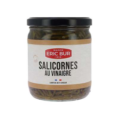 "La salicorne pousse sur nos littoraux, sur des terres régulièrement recouvertes par les eaux. Légume des rivages pauvre en calories, elle est riche en iode, phosphore, silice et manganèse. Avec son goût légèrement acidulé et salin, la salicorne au vinaigre accompagnera parfaitement comme condiment, la charcuterie et les poissons fumés ou agrémentera vos salades. "