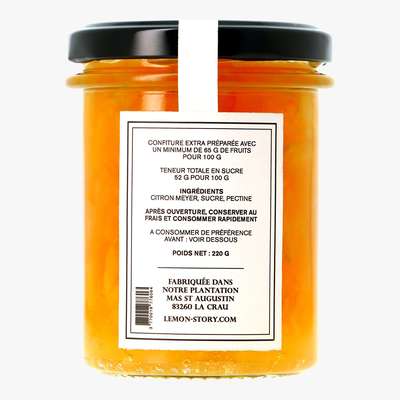 Cette confiture extra de citron Meyer, entre fraîcheur et douceur, est réalisée par une agrumerie familiale, offrant une expérience unique.