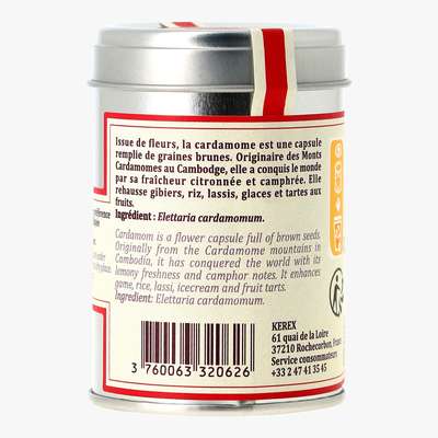 Cette cardamome verte du Guatemala, aux notes d'eucalyptus, se marie parfaitement avec gibier, riz et poissons.