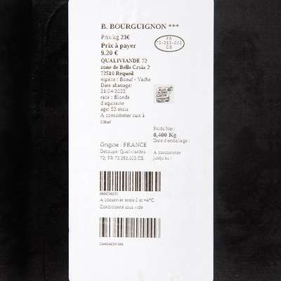 Ces découpes de viande Bleu-Blanc-Cœur, issues de bœufs de la race Blonde d'Aquitaine, sont idéales pour réaliser des bœufs Bourguignon.