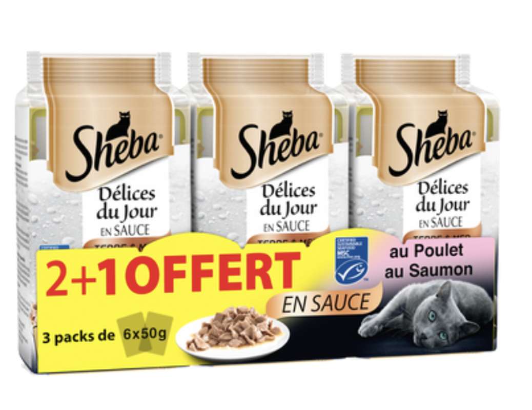 Délices du jour pour chat au poulet et saumon, Sheba (2 x 300 g + 1 OFFERT)