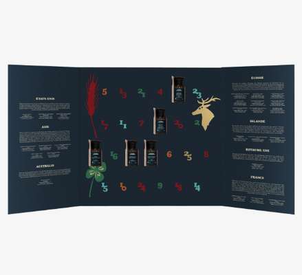 Comme son nom l'indique ce calendrier est un tour du monde du whisky, du Nord de l’Europe à l’Océanie, de l’Asie à l’Amérique, les whiskies proviennent de tous les continents. À travers 25 fioles de 2 cl, découvrez autant de cultures et de climats différents, de techniques de production et de saveurs, dans un assortiment qui reflète les savoir-faire de distilleries bicentenaires et de plus jeunes marques qui bousculent les codes. Chaque jour révèle une nouvelle destination, accompagnée d’une masterclass en ligne, pour une dégustation immersive et éclairée. 25 x 2 cl