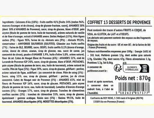 Plus qu’une simple gourmandise, c’est une tradition séculaire qui s’invite à votre table. Depuis le XVIIᵉ siècle, les 13 desserts de Provence célèbrent l’abondance et la convivialité des fêtes de fin d’année. Ce coffret rassemble les incontournables : amandes de Provence, noisettes françaises, fruits secs, calissons d’Aix, nougats blancs et noirs, orangettes, pâtes de fruits aux saveurs du Sud et le fameux Gibassié sablé. À partager en famille ou entre amis à la fin du repas, comme le veut la coutume.