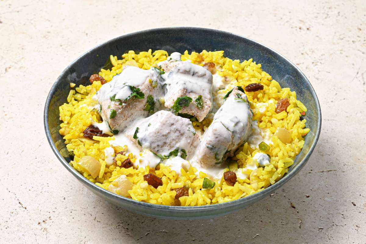 Une recette inspirée par les plats du Nord de l'Inde, avec des morceaux de poulet Bleu Blanc Cœur moelleux et un riz aux noix et épices. Voyage, voyage !