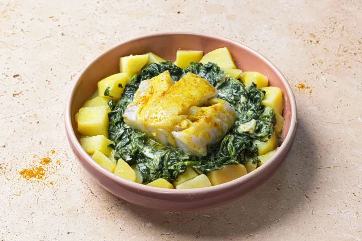 Un lieu noir cuit à la vapeur accompagné d'un mélange d'épinards crémeux au curry ! Des pommes de terre fondantes. Un plat tout en simplicité !